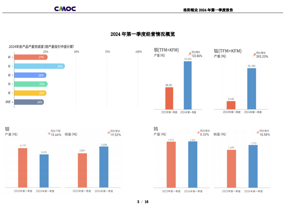 (洛陽(yáng)鉬業(yè)2024年第一季度報(bào)告)